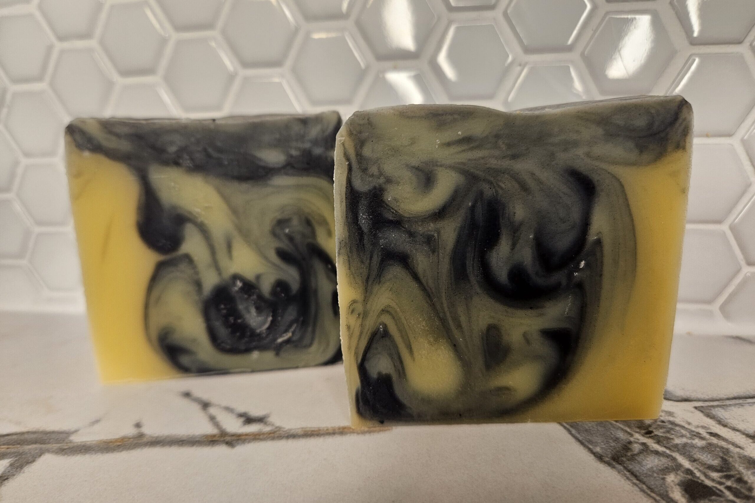 Ingredients: Coconut oil, olive oil, castor bean oil, water, lye, charcoal, lemongrass essential oil.